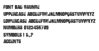 Bad Grunge — это бесплатный шрифт, разработанный для Windows, который воплощает смелую, изношенную эстетику, подходящую для различных проектов персонализации. С его толстыми, громоздкими буквами и сильно текстурированными краями он передает сырую городскую энергию, идеальную для дерзких дизайнов, таких как постеры, музыкальная продукция и логотипы. Грубая индустриальная атмосфера шрифта и вид, имитирующий ручную трафаретную печать, вызывают элементы уличного искусства и винтажных заводских штампов, что делает его уникальным выбором для творческих начинаний.